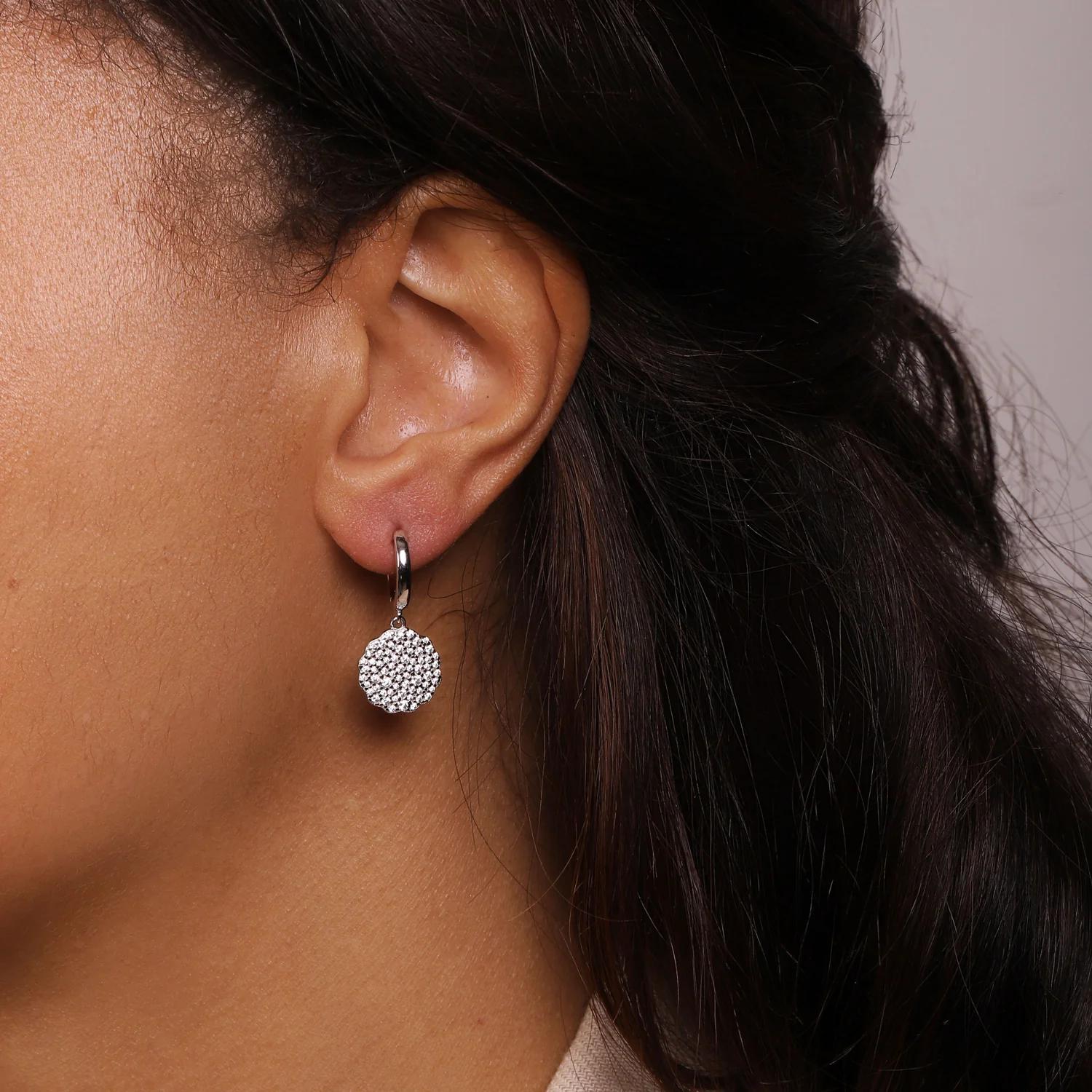 Sparkly, delicate and timeless, the Aurora Collection can be styled with any look. The Aurora Huggie Hoop Earrings can be worn everyday or to add some sparkle to your evening or a special occasion. Beautifully-crafted, featuring an array of sparkly pavé-set cubic zirconia stones on two discs, set onto huggie hoops with a hinged clasp. Crafted from hypoallergenic, hallmarked 925 sterling silver, you can choose from plated finishes in rhodium (for a tarnish-resistant silver finish) or 18ct gold on sterling silver.