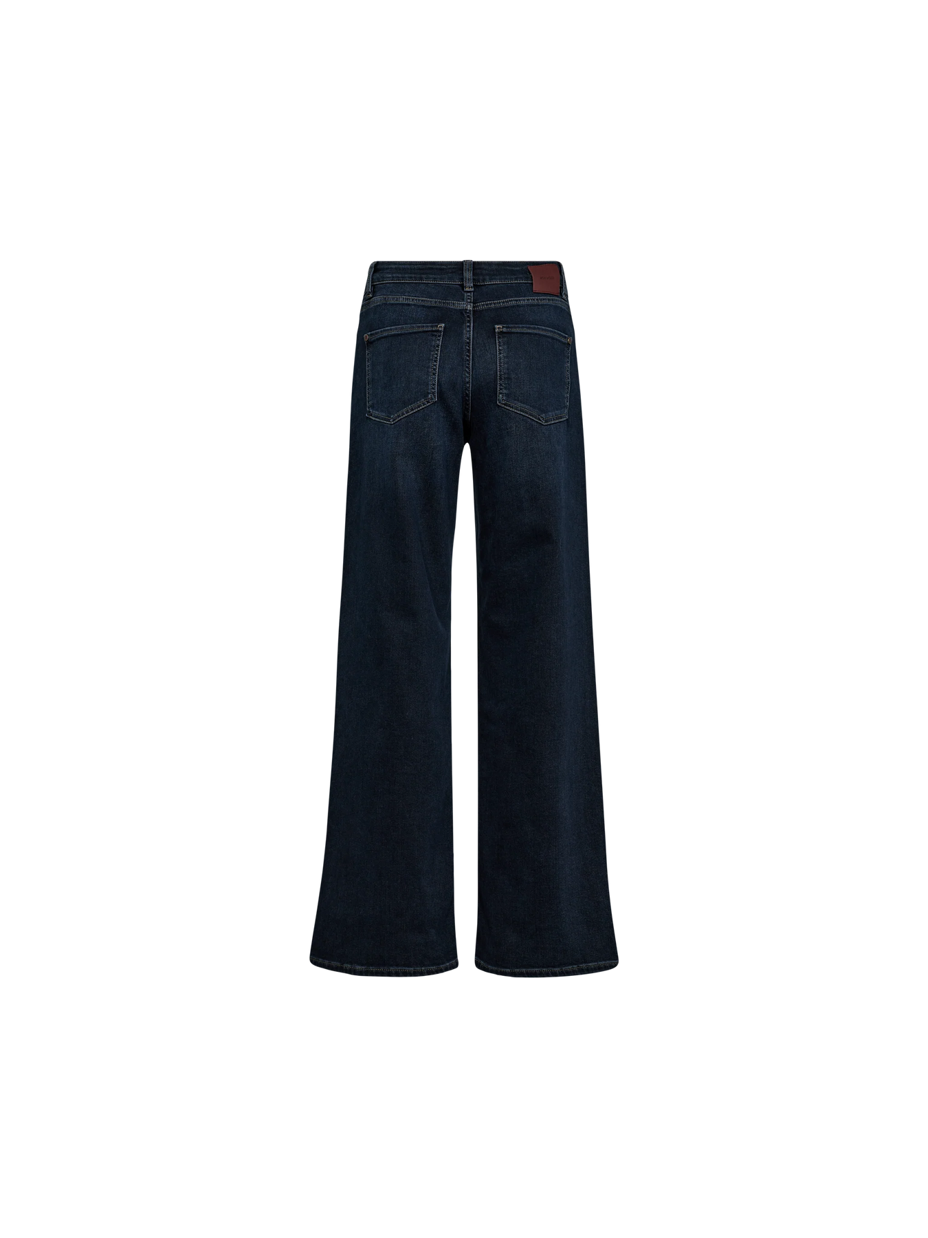 Introducing wide-legged jeans in a stylish blue wash with a high-rise fit. Finished with leather detailing at the coin pocket. Pair casually with a chunky knit or dress up with a glitter tank top and oversized blazer for a night out83% Cotton