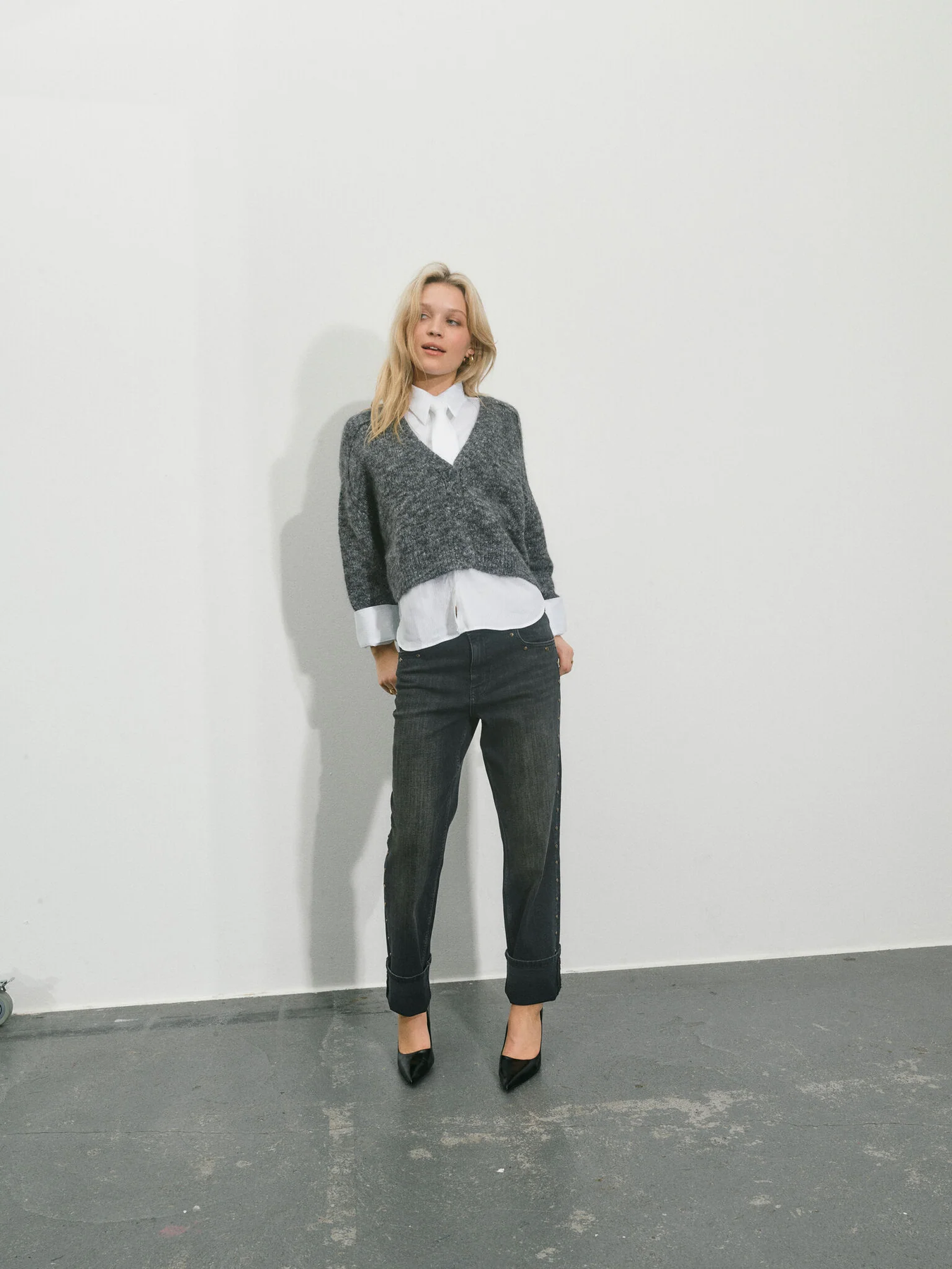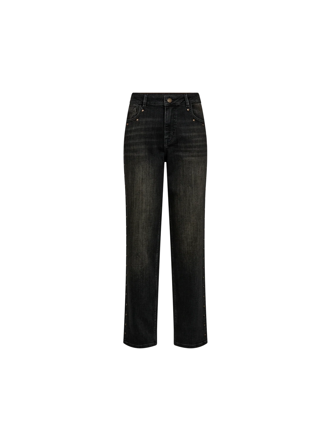 Channelling a cool vibe, these mid-waist boyfriend jeans are crafted for effortless comfort with their regular fit. Featuring classic five-pocket detailing, a button and zip fastening, and denim studs at the front pockets, they bring a touch of edge to any ensemble. We love to pair them with a cosy chunky knit or a tailored shirt and blazer for a versatile look.