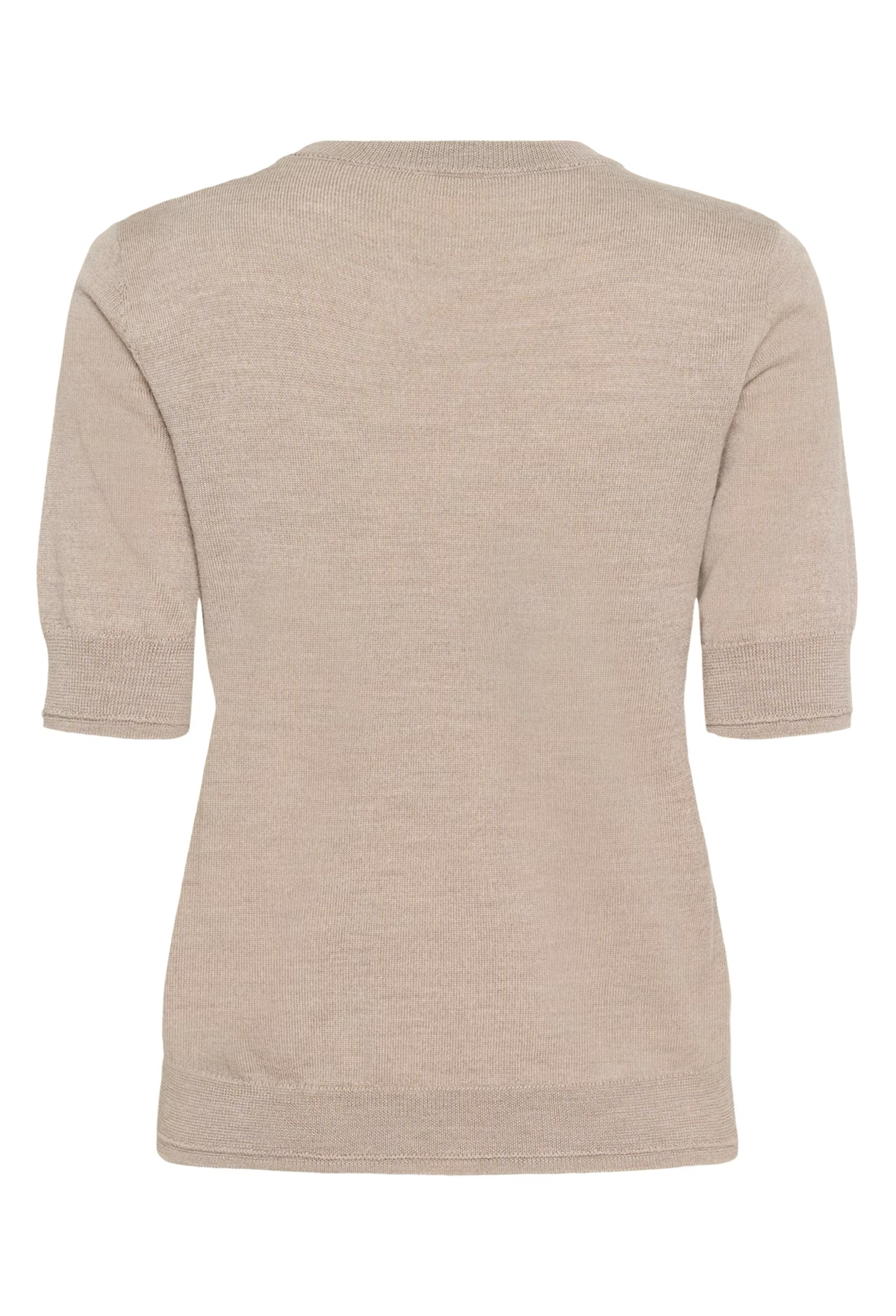 The model is 172 cm tall and wears a size M. This short-sleeved knit is crafted from a soft and lightweight material with a round neckline and fine ribbed edges. The simple and timeless design makes it easy to style – wear it on its own or layered under a blazer. Perfect for both everyday and more formal occasions.