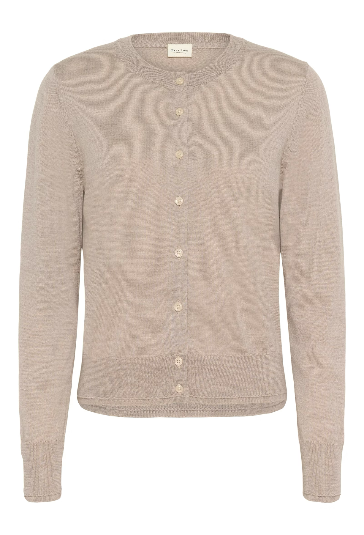 The model is 172 cm tall and wears a size M. This classic cardigan in a warm beige shade is knitted in a soft and lightweight quality with a round neckline and delicate ribbed trims. The timeless button fastening allows for versatile styling – wear it open or closed depending on the occasion. Perfect over a shirt or a simple dress for a versatile everyday look.