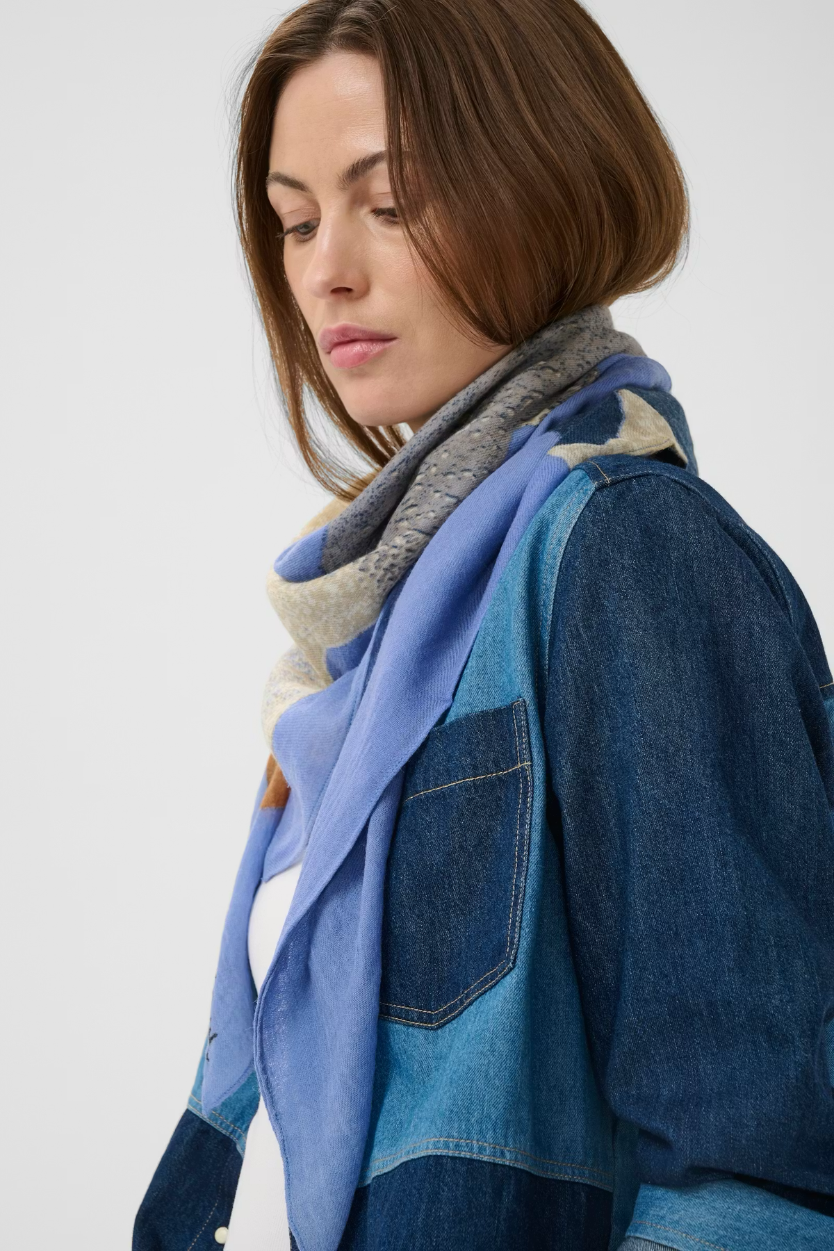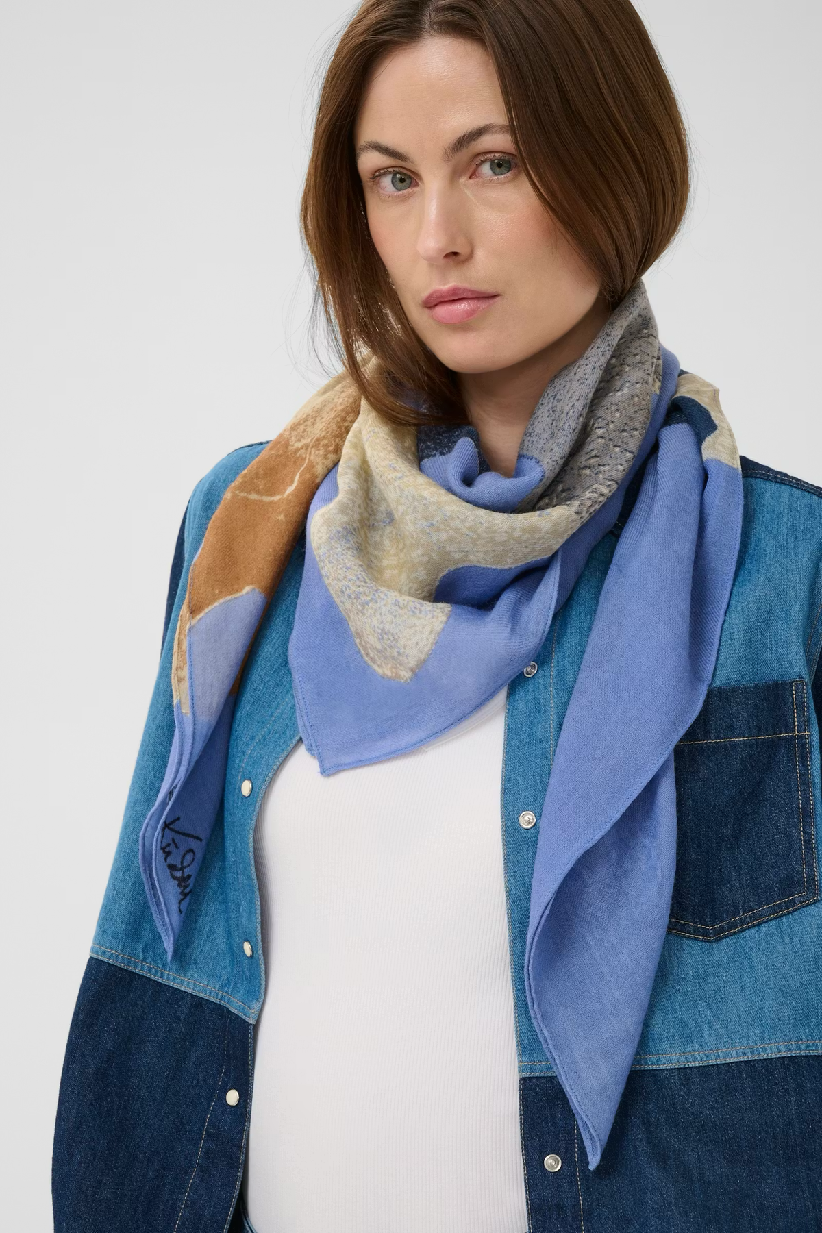 This lightweight scarf features a versatile rectangular shape, soft fabric for comfort, and a modern design. Perfect for layering, the accessory offers an elegant drape and is ideal for both casual and formal outfits