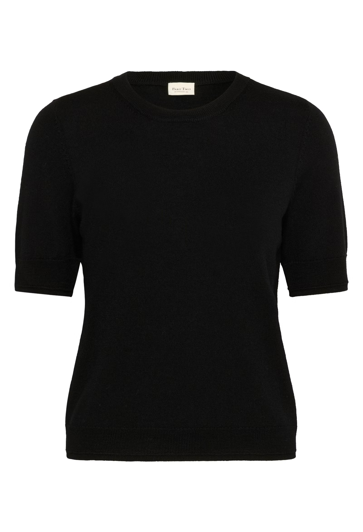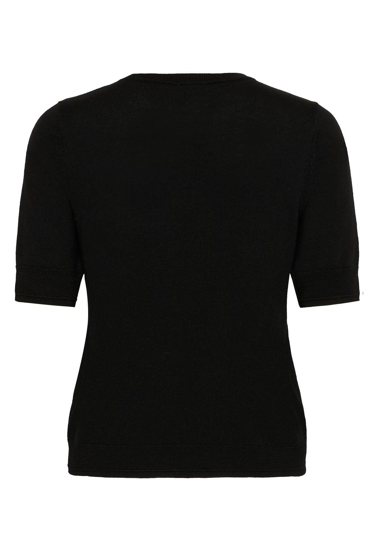 The model is 176 cm tall and wears a size M. This short-sleeved knit top is crafted from a soft, lightweight fabric that ensures comfort. With a round neckline and a clean silhouette, it’s a versatile piece – wear it with trousers or a skirt, on its own or under a cardigan